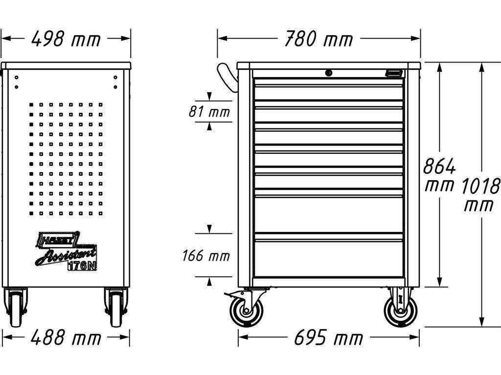 Dílenský vozík na nářadí HAZET Assistent 176N-7, 7 zásuvek