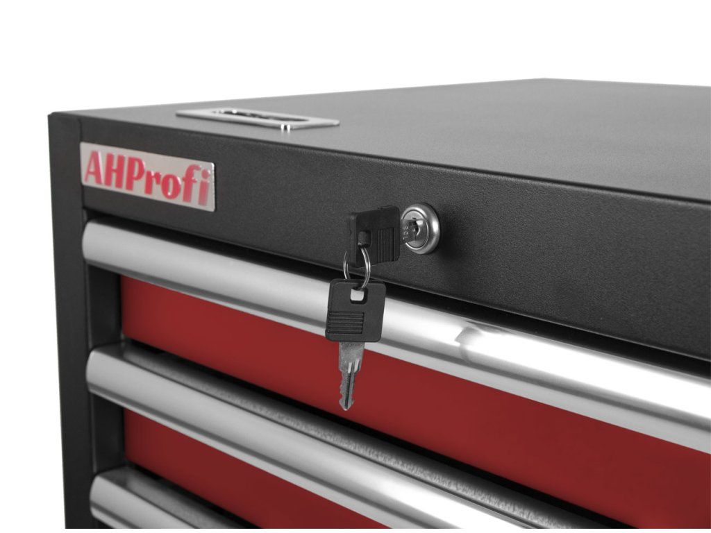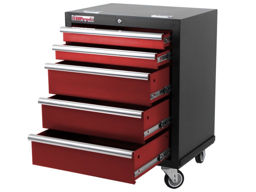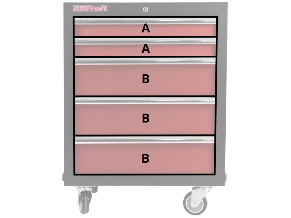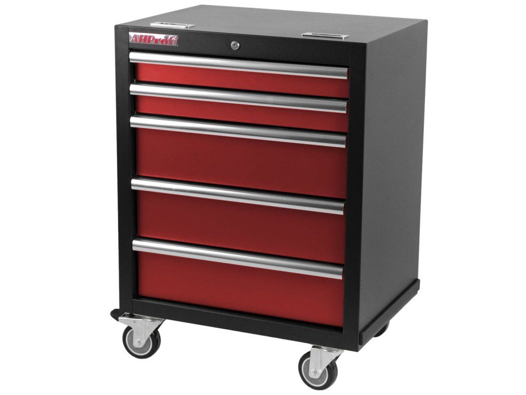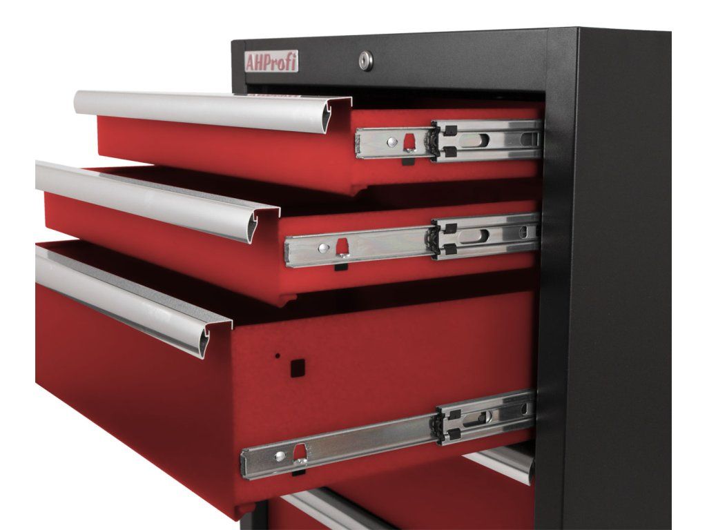 Součástí vozíku je 5 uzamykatelných zásuvek pro uložení výplní dílenského vozíku s ručním nářadím. Zásuvky jsou osazeny kuličkovými ložisky v pojezdech, čímž se zvyšuje jejich nosnost bez vlivu na výbornou vlastnost výjíždění/zajíždění.