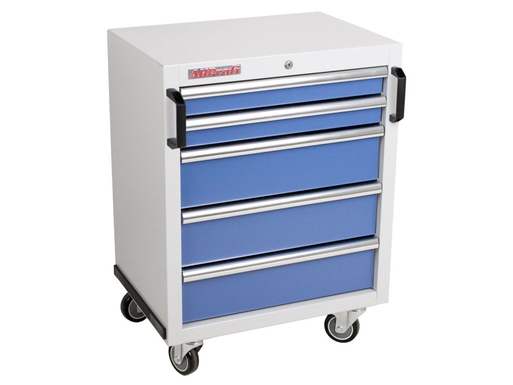 Celokovový dílenský vozík PROFI s 5 uzamykatelnými zásuvkami je ideální řešení pro maximální přehled, úložnou kapacitu a rychlou manipulaci v autoservisu, dílně i garáži.