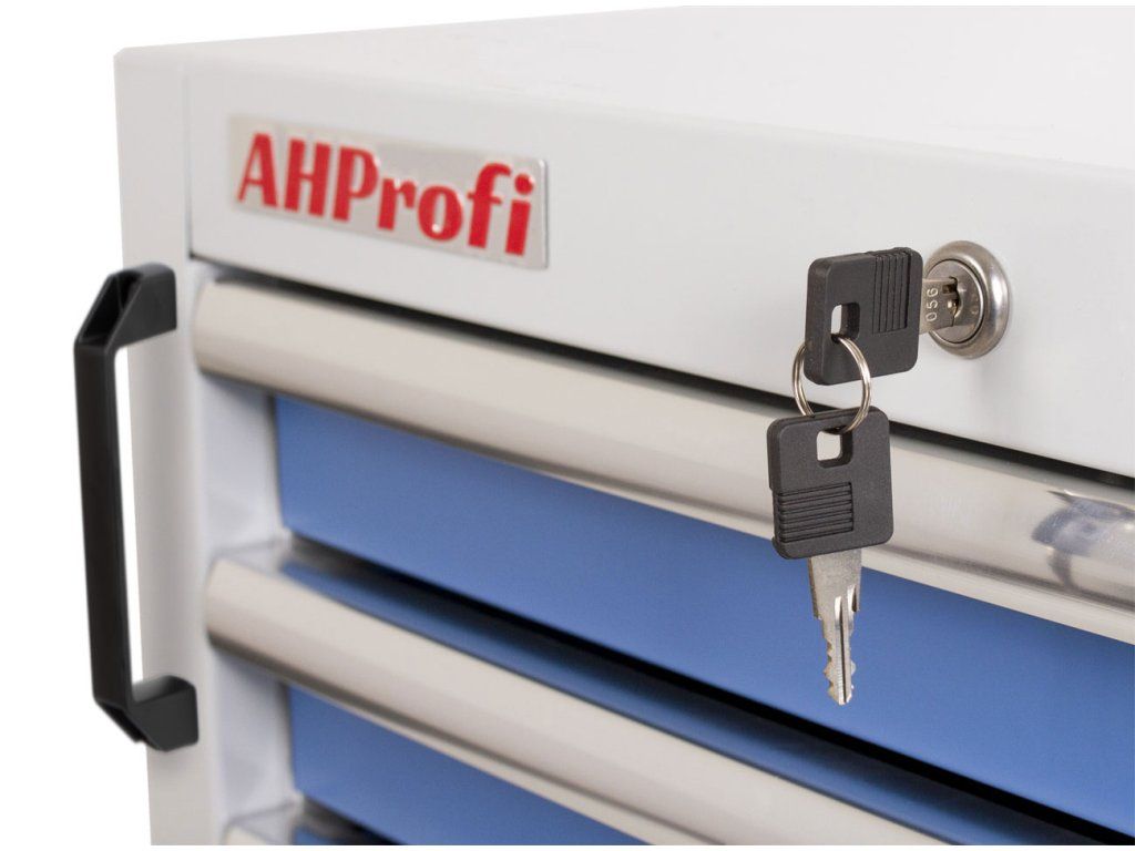 - Disponuje 5 uzamykatelnými zásuvkami pro přehledné uložení nářadí a výplní do vozíků.