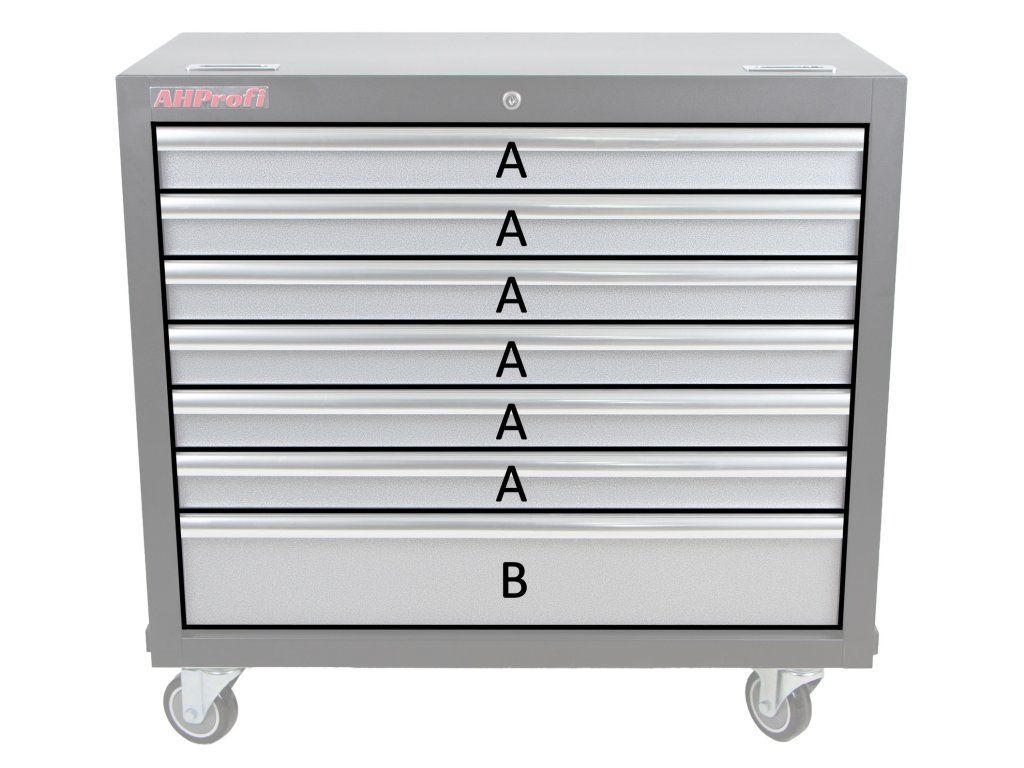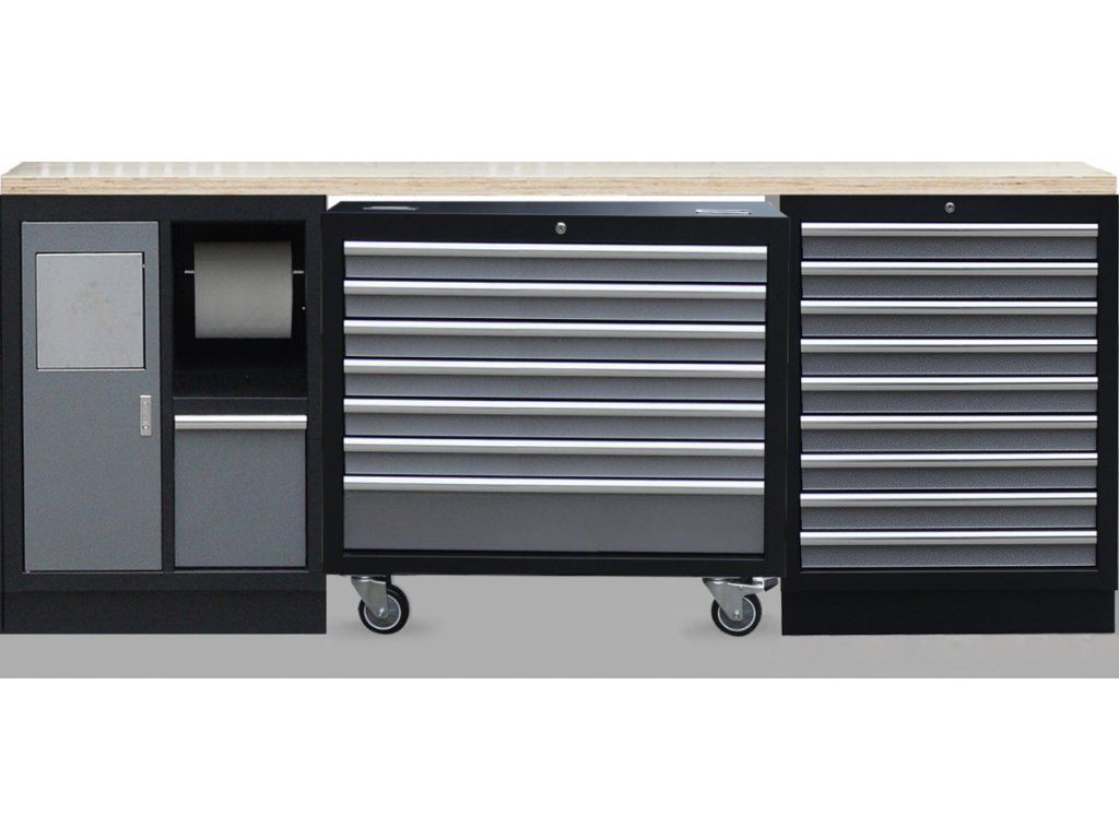 Součástí vozíku je 7 uzamykatelných zásuvek pro uložení výplní dílenského vozíku s ručním nářadím. Zásuvky jsou osazeny kuličkovými ložisky v pojezdech, čímž se zvyšuje jejich nosnost bez vlivu na výbornou vlastnost výjíždění/zajíždění.