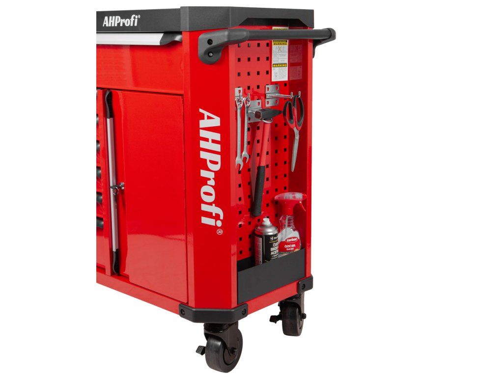 Na obou stranách vozíku se nacházejí perforované panely, které umožňují zavěšení dalšího nářadí pomocí různých druhů háčků. Děrovaná deska má rozteč děr 38x38 mm.