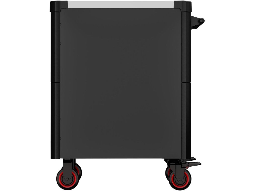 Konstrukci tvoří práškově lakované tělo s nerezovou pracovní plochou, která odolává mechanickému zatížení i chemikáliím. Ergonomická rukojeť spolu s kvalitními kolečky usnadňuje manipulaci na dílně i v terénu.