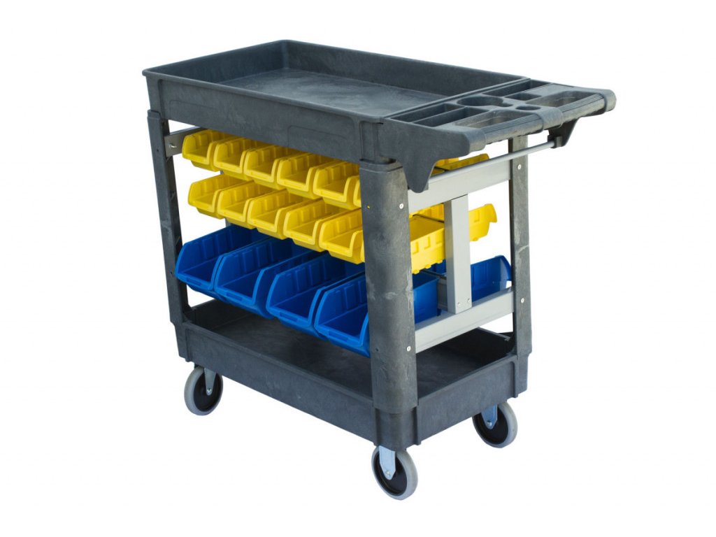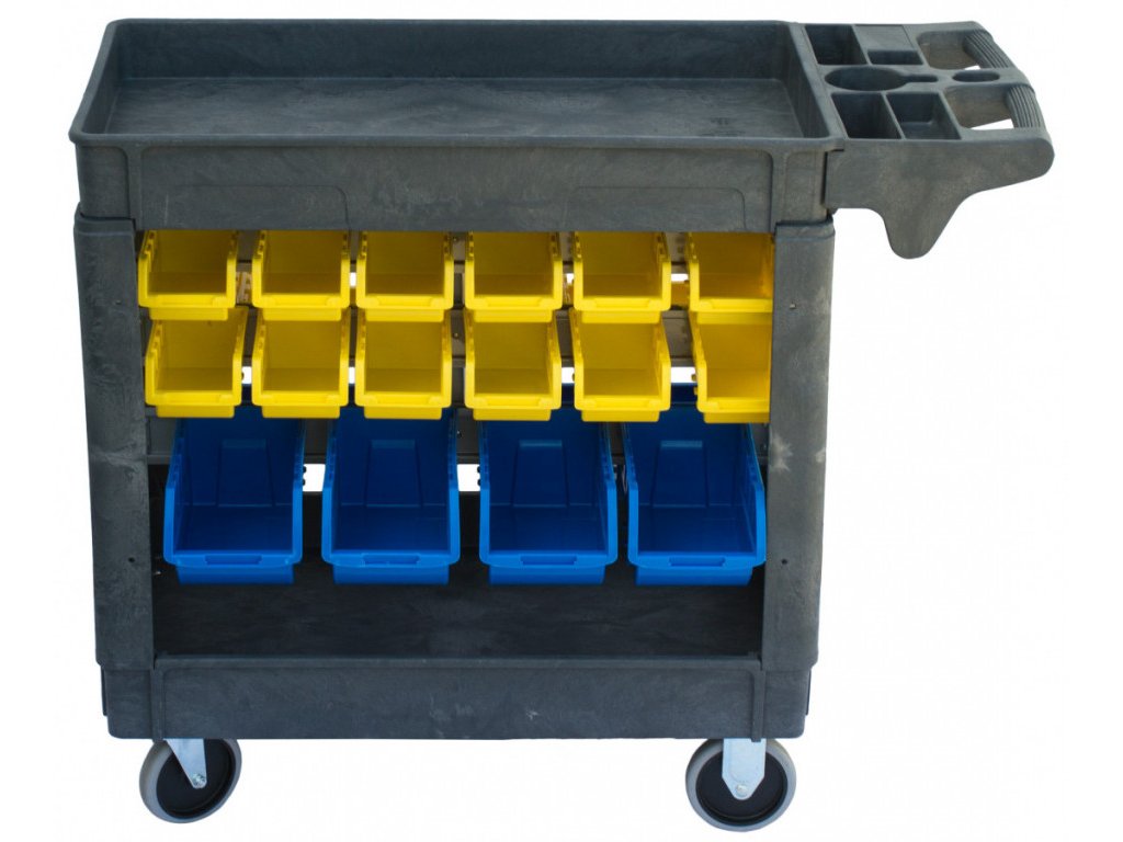 Vozík s boxy na nářadí je vyroben z kvalitního polypropylenu. Díky tomu je vozík lehčí a zároveň pevný, stabilní a mechanicky odolný. Oproti kovovým a těžším vozíkům je navíc nekorozivní a snadný na údržbu.