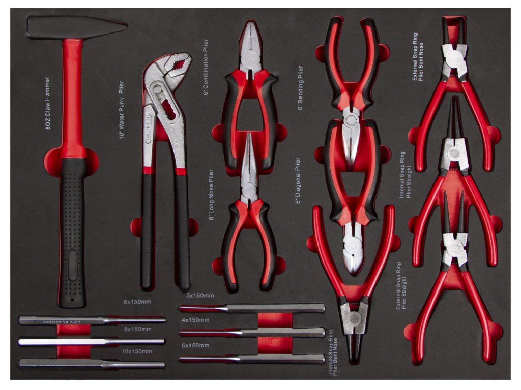 - Pěnové výplně s nejpoužívanějším nářadím