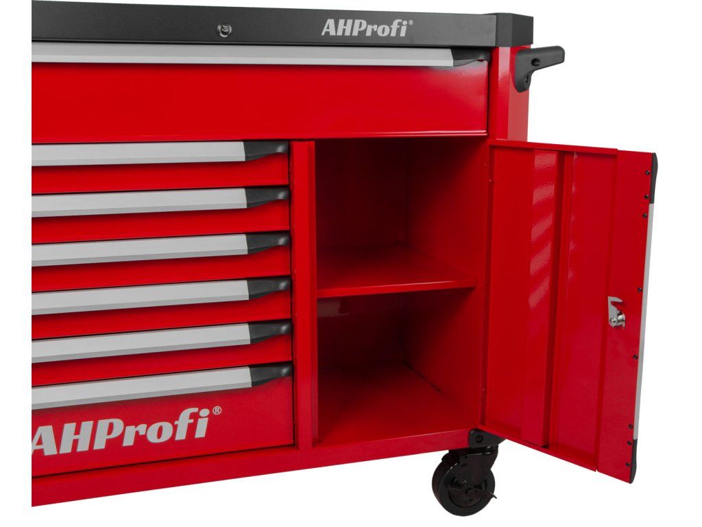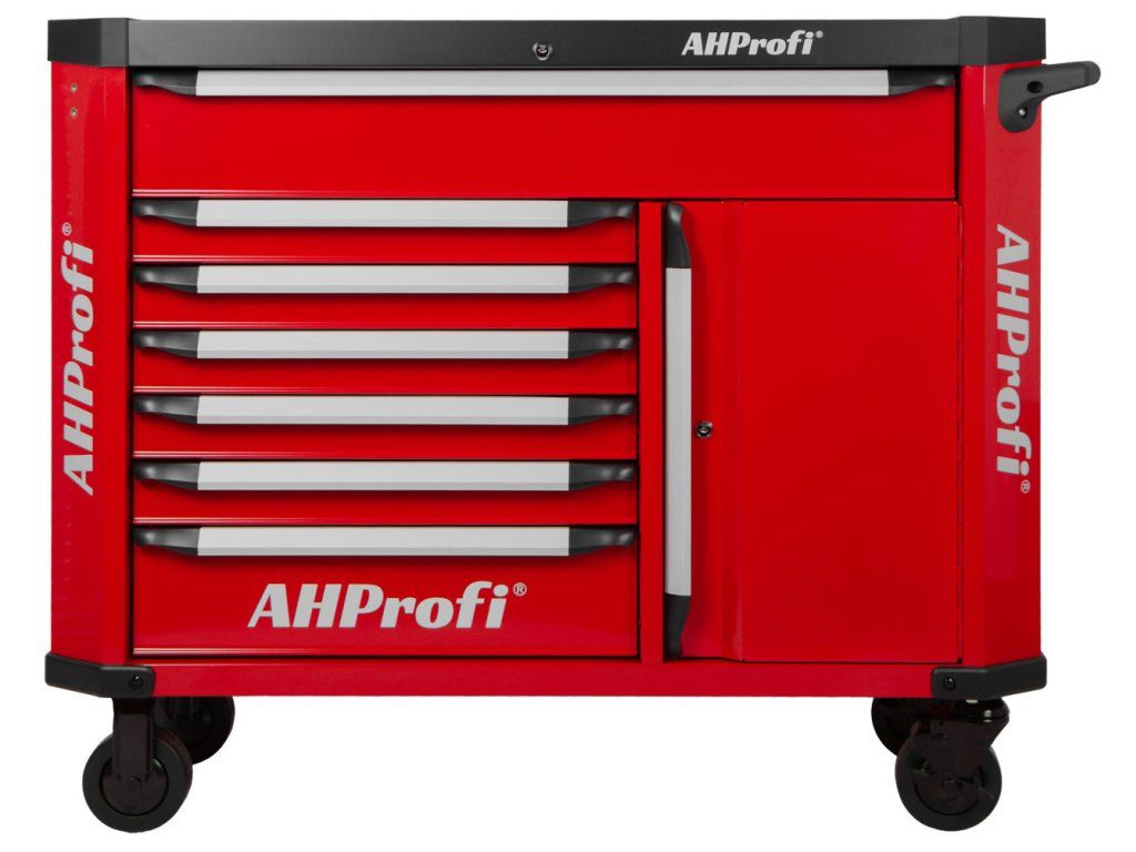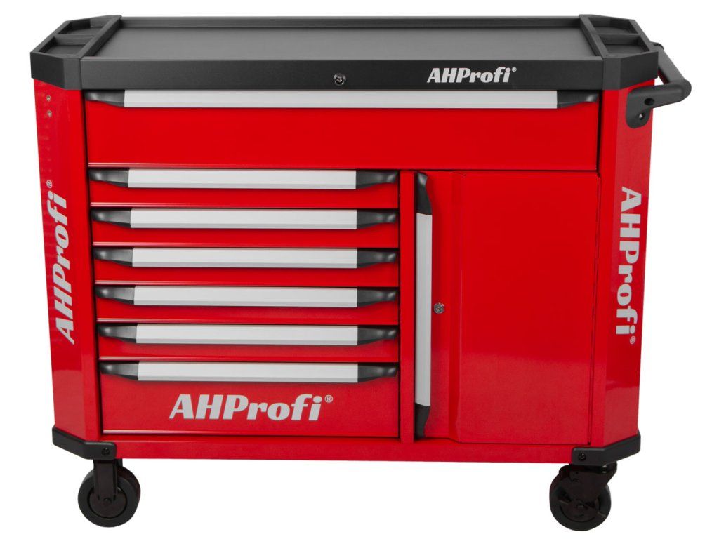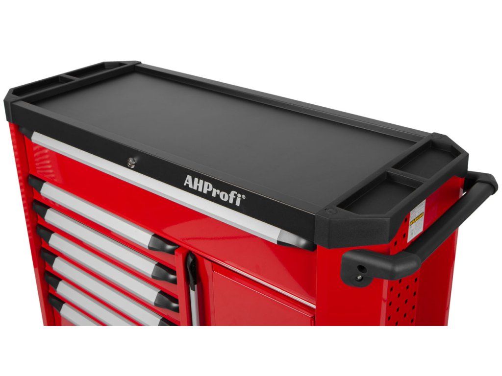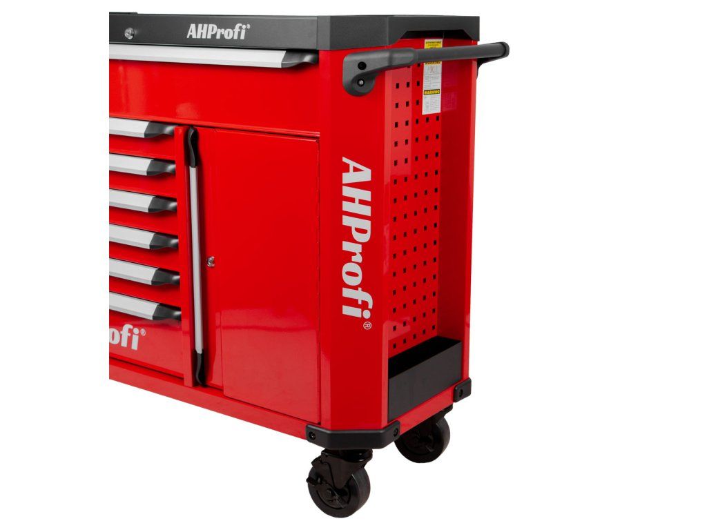 Široká konstrukce vozíku s množstvím úložného prostoru s celkem 7 šuplíky a skříňkou na nářadí, s celkovými rozměry (š x h x v) 1190 mm x 459 mm x 818 mm (bez koleček), nabízí dostatek úložného prostoru i pro náročné uživatele.