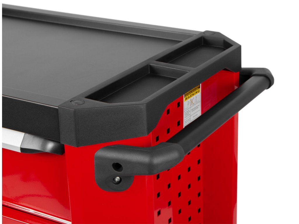 Vozík disponuje 7 zásuvkami různých velikostí, což umožňuje přehledné uspořádání nářadí: