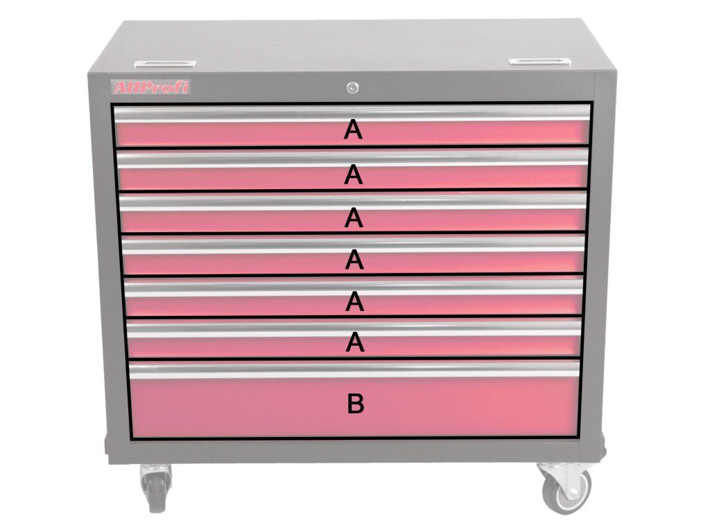 Součástí vozíku je 7 uzamykatelných zásuvek pro uložení výplní dílenského vozíku s ručním nářadím. Zásuvky jsou osazeny kuličkovými ložisky v pojezdech, čímž se zvyšuje jejich nosnost bez vlivu na výbornou vlastnost výjíždění/zajíždění.