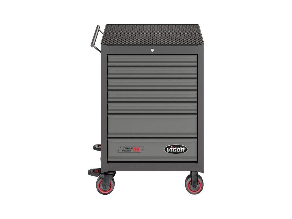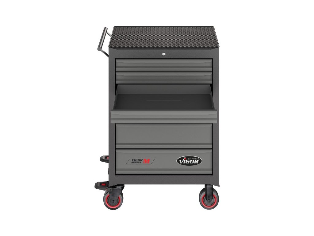 Dílenský vozík je celokovový, samotná pracovní plocha dílenského vozíku je z tvrzeného plastu s prolisy pro uložení drobného montážního materiálu.