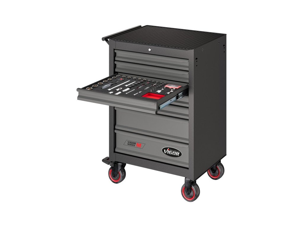 Dílenský vozík s nářadím 228 ks, VIGOR 500N, se 7 zásuvkami - V2712N
