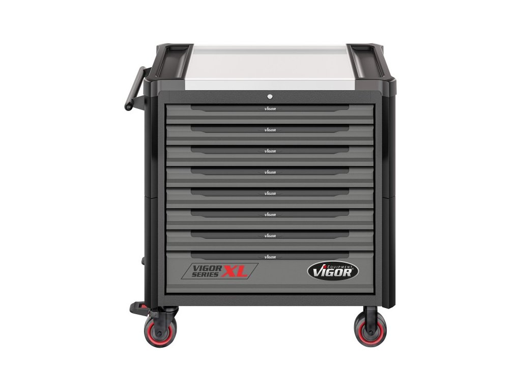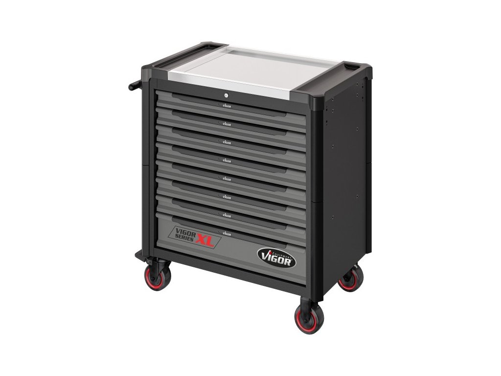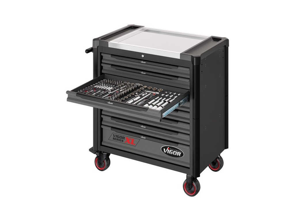 Profesionální dílenský vozík s 375 ks nářadí od německé značky Vigor.