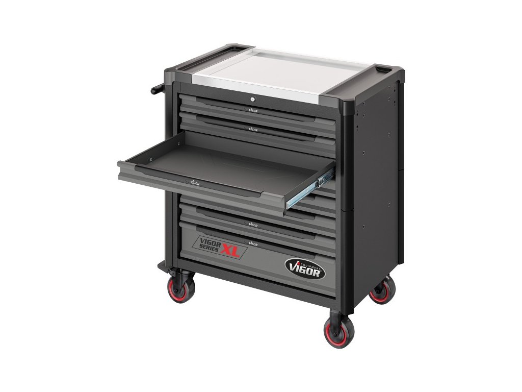 Součástí vozíku je 8 uzamykatelných zásuvek pro uložení výplní dílenského vozíku s ručním nářadím. Zásuvky jsou osazeny kuličkovými ložisky v pojezdech, čímž se zvyšuje jejich nosnost bez vlivu na výbornou vlastnost výjíždění/zajíždění.