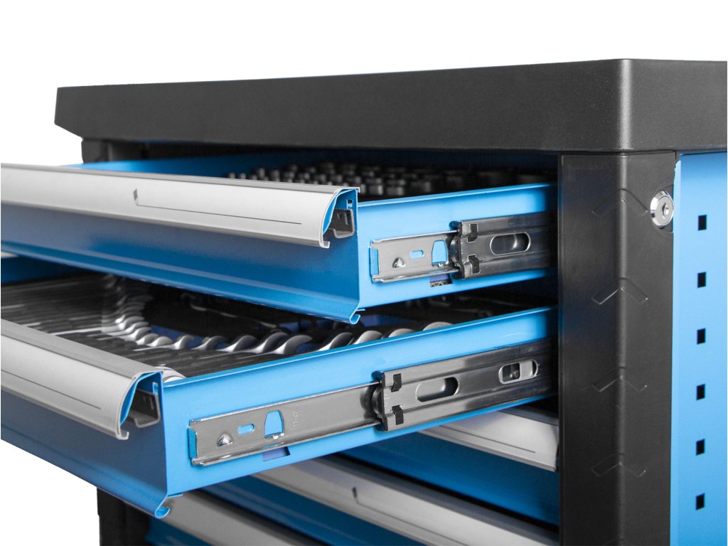 Rozložením výplní ve vozících se zrychluje orientace v rozměrech a umístění nářadí..