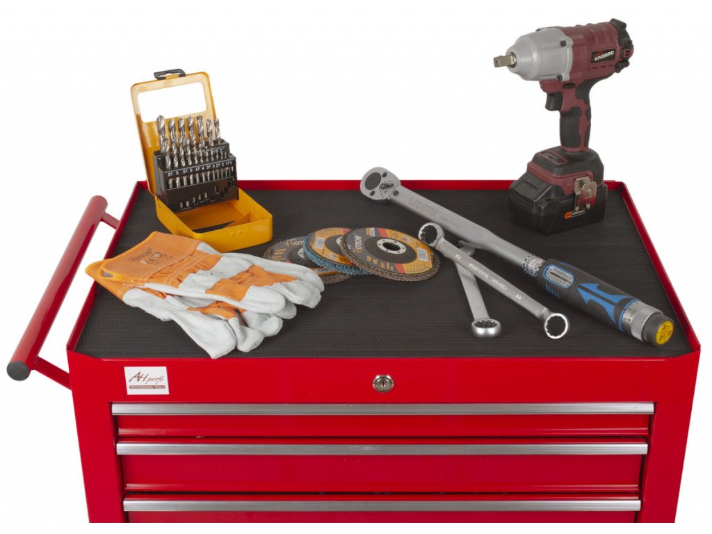 Pracovní plocha je opatřena gumovou podložkou pro zamezení poškození nářadí a vozíku.