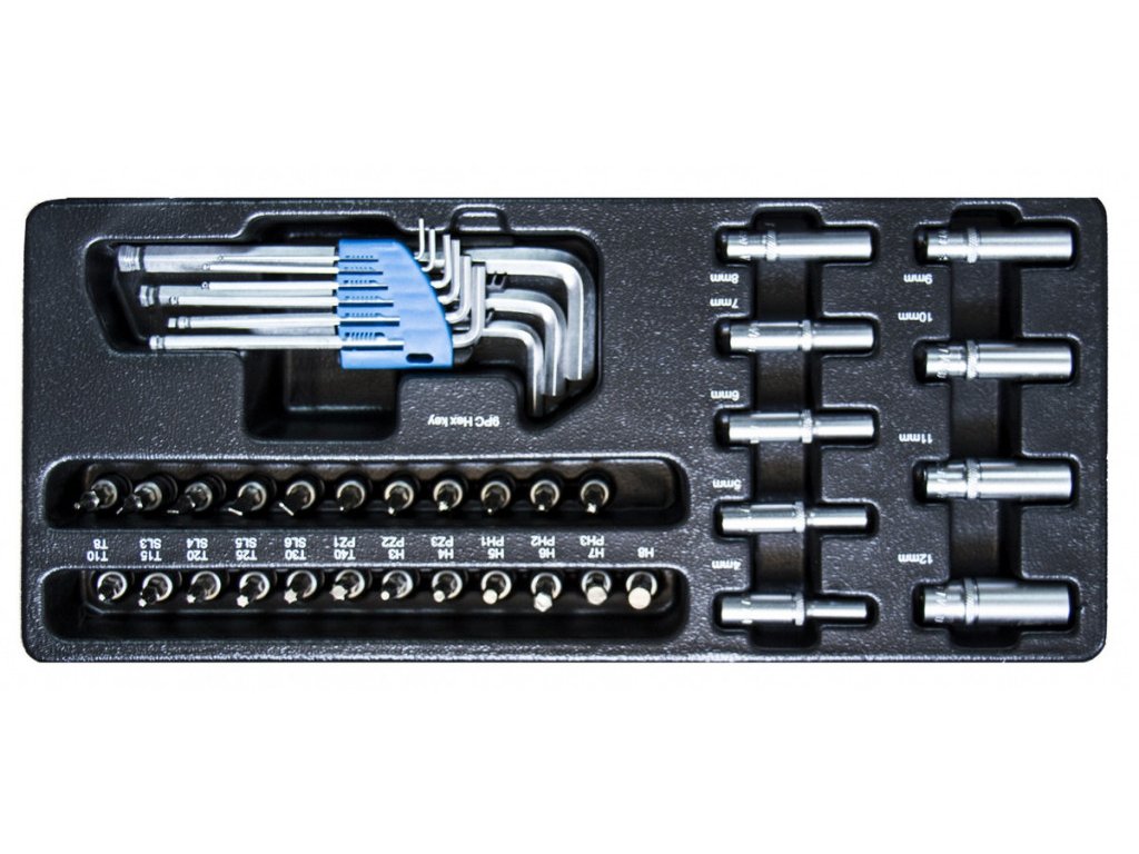 | 23 ks | Hlavice s bity: PH1, 2, 3 | PZ1, 2, 3 | SL3, 4, 5, 6 |TORX T8, 10, 15, 20, 25, 30, 40 | IMBUS - H3, 4, 5, 6, 7, 8. |