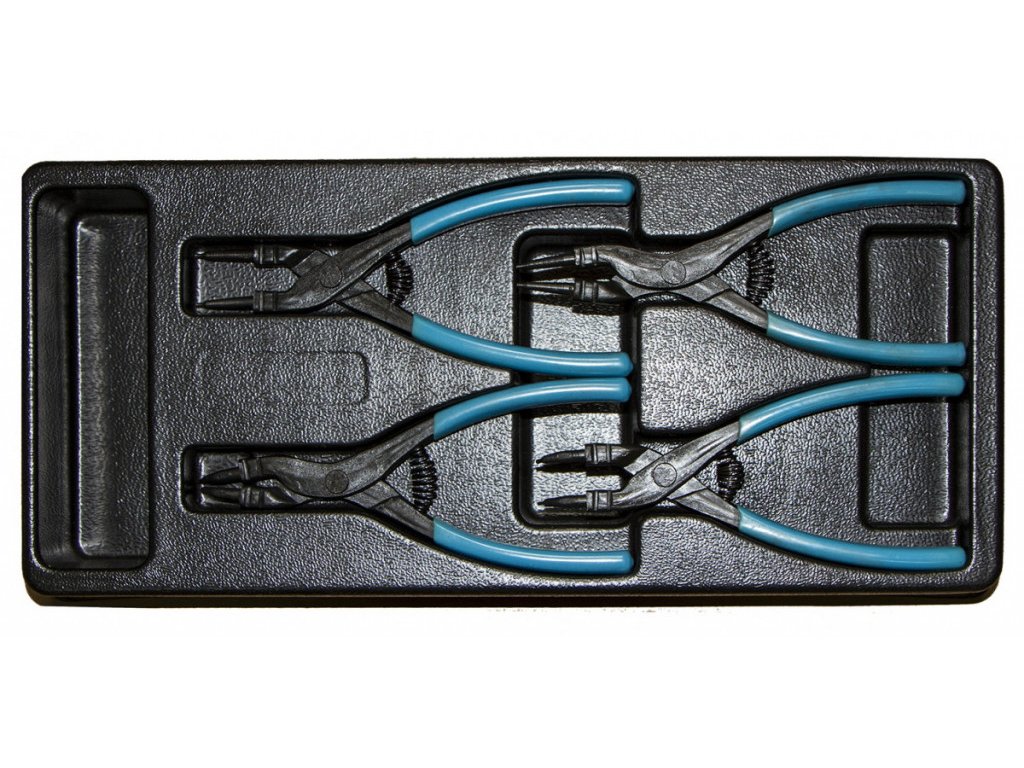 Čtyři zásuvky jsou vybaveny výplněmi s nářadím. Horní a 2 spodní zásuvky jsou prázdné.