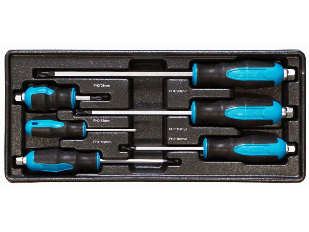 | 1 ks | Úderové křížové šroubováky: PH0x75 mm | PH1x100 mm | PH2x38 mm | PH2x100 mm | PH3x150 mm | PH4x200 mm. |
