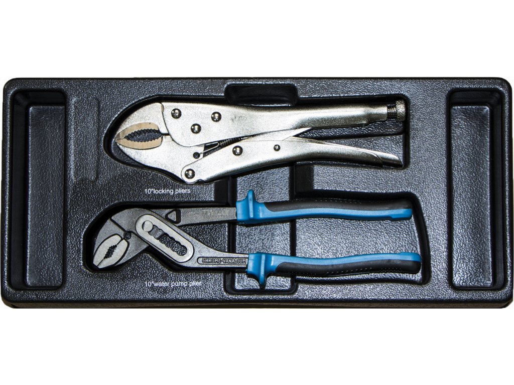Rozměry vozíku s kolečky jsou: 755 x 460 x 955 (š x h x v). Nářadí se nachází v 12-ti plastových výplních. V sadách nářadí naleznete golu 1/2", 1/4", očkoploché klíče, různé druhy kleští, kladivo, šroubováky, IMBUSy, TORXy atd.