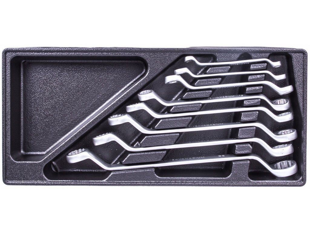 | 8 ks | Očkové vyhnuté klíče: 6 x 7,8 x 9,10 x 11,12 x 13,14 x 15,16 x 17,18 x 19 a 20 x 22 mm. |