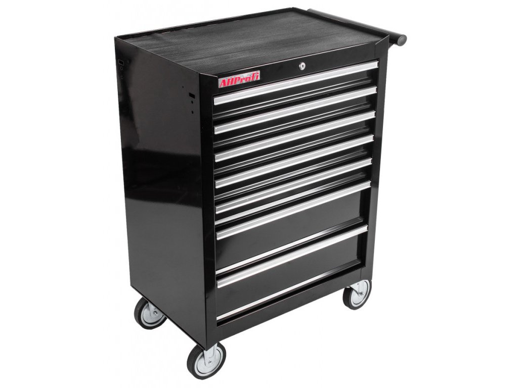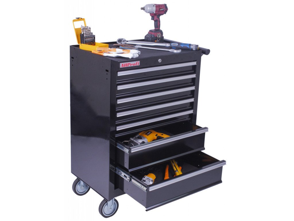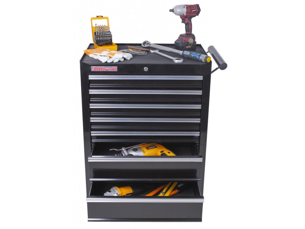 Černý dílenský vozík se 7-mi zásuvkami obsahuje 234 kusů nejpotřebnějšího nářadí pro běžné domácí a hobby používání.