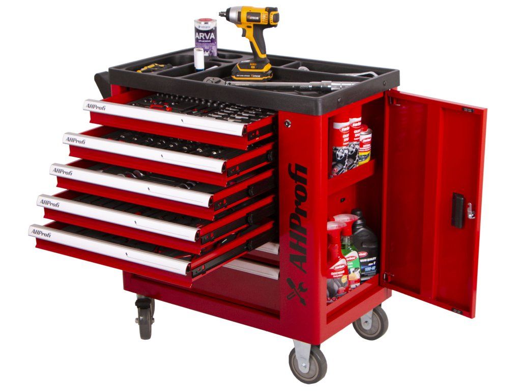 Dílenský vozík Superior s nářadím, 7 zásuvek, boční skříňka, 234 kusů - AHProfi
