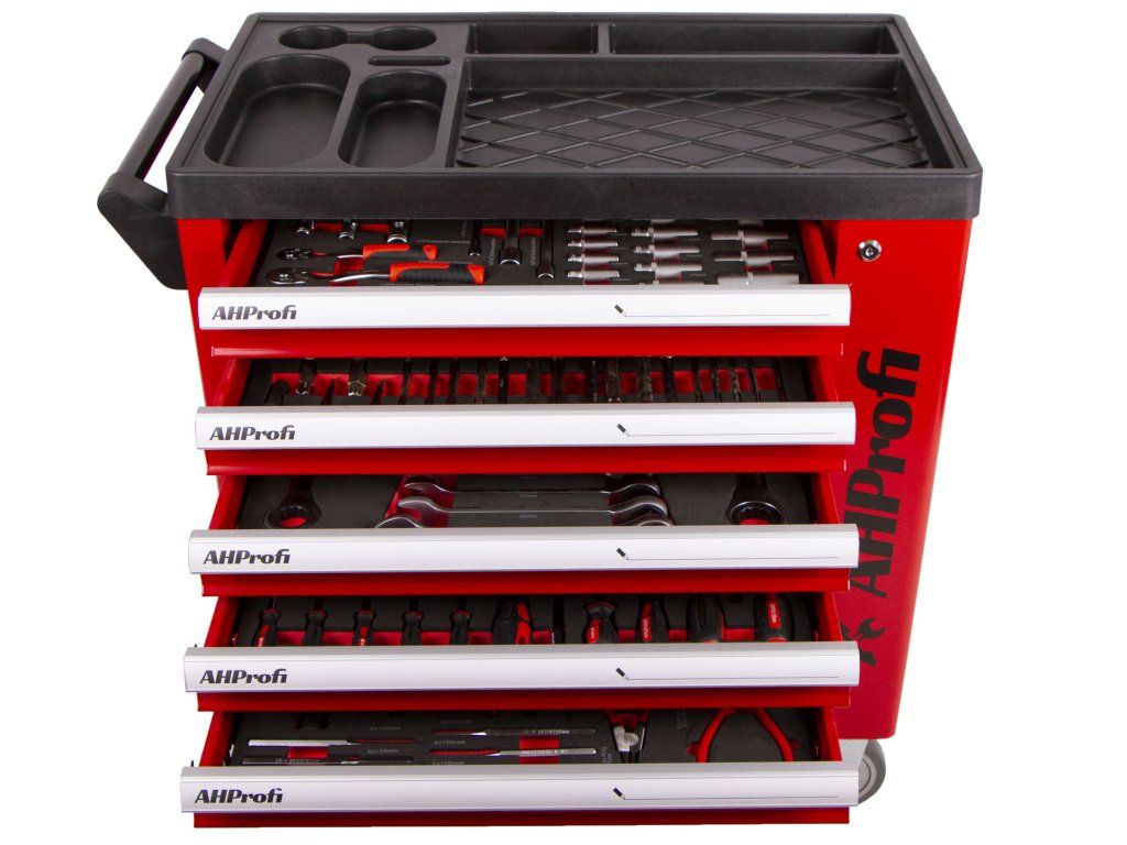 Vozík obsahuje 5 pěnových výplní s nářadím. V pěnové výplni nářadí skvěle drží a na rozdíl od plastové výplně nepopraská.