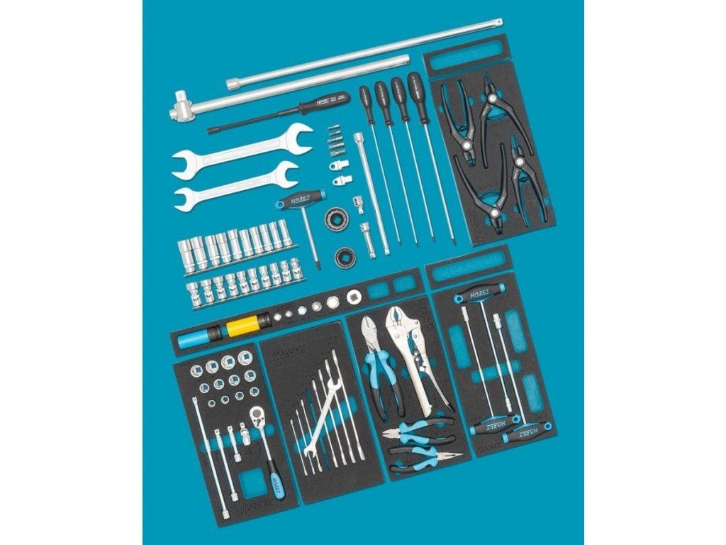 Doplňková sada nářadí pro osobní automobily AUDI od německého výrobce HAZET, 86 dílů, vhodná do zásuvek pojízdných vozíků.
