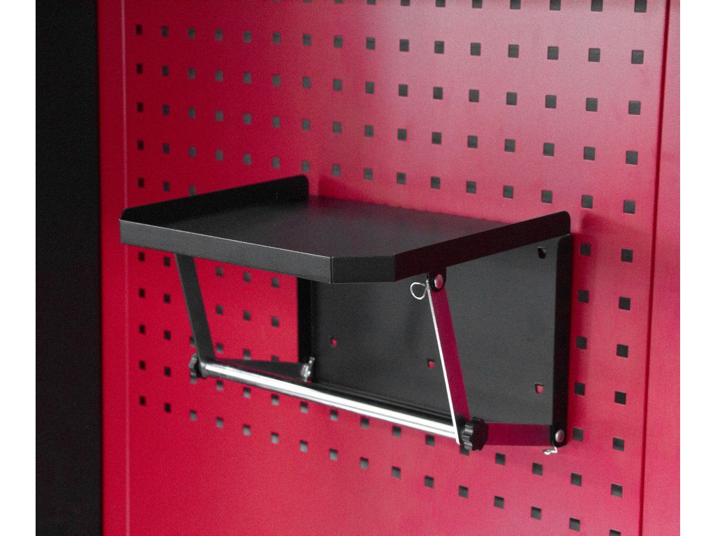 Držák na papírové role je určen pro děrované desky s roztečí 38 x 38 mm. Připevněním na perforovaný panel lze rozšířit úložný prostor také pro sestavy dílenského nábytku, dílenské vozíky s nářadím i bez nářadí, pracovní stoly i policové regály.