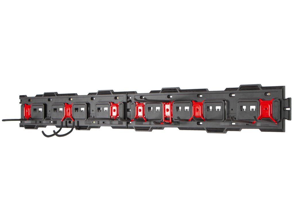 Sada držáků na sportovní vybavení. 2 odolné závěsné desky, rozměr desky 79,5 x 19 cm, nosnost 136 kg. 7 praktických háků (2x na kola)