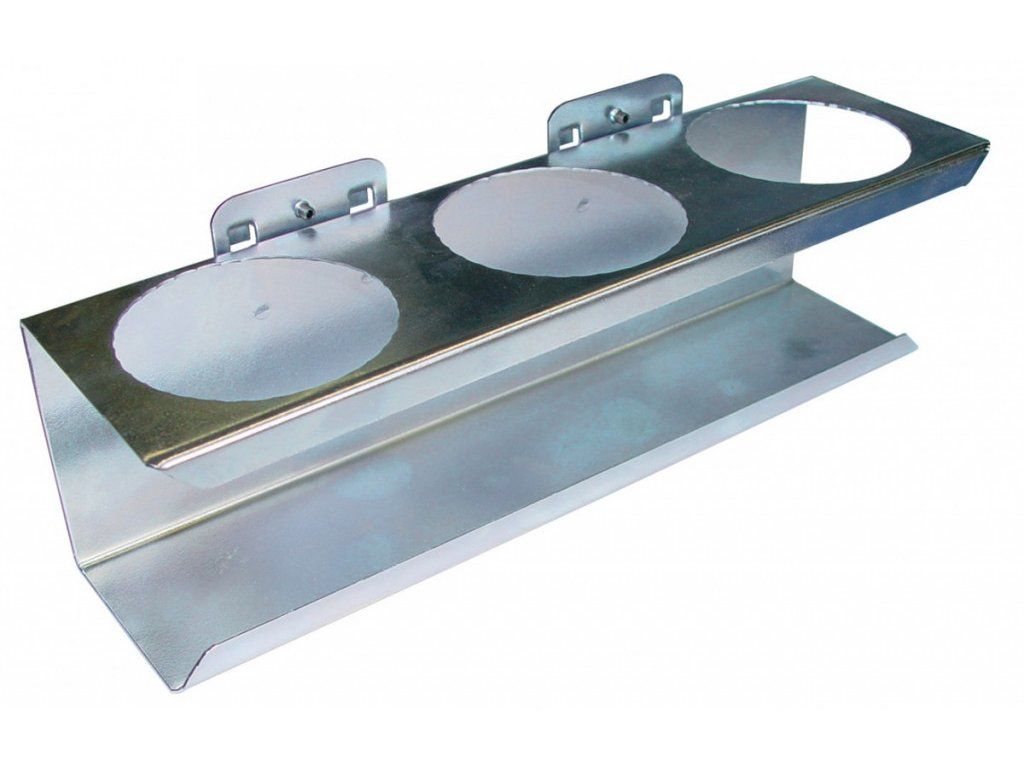 Držák nádobek je určen pro děrované desky s roztečí 38 x 38 mm. Lze jej připevnit také na perforované panely sestav dílenského nábytku, dílenské vozíky, pracovní stoly a policové regály.