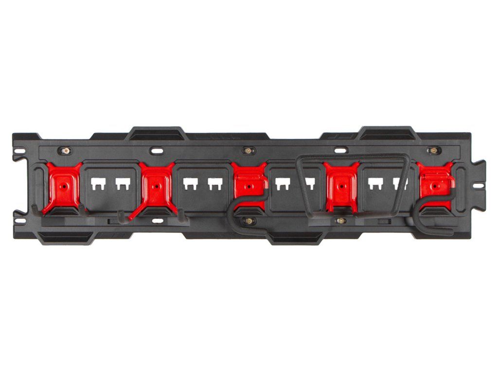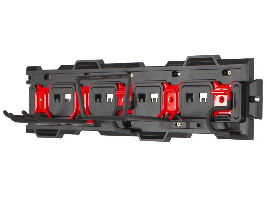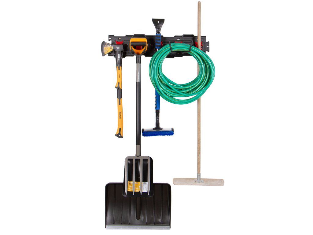 Závěsný systém pro zahradní nářadí, deska 795 x 190 mm, nosnost 136 kg, 5 praktických háků součástí sady.