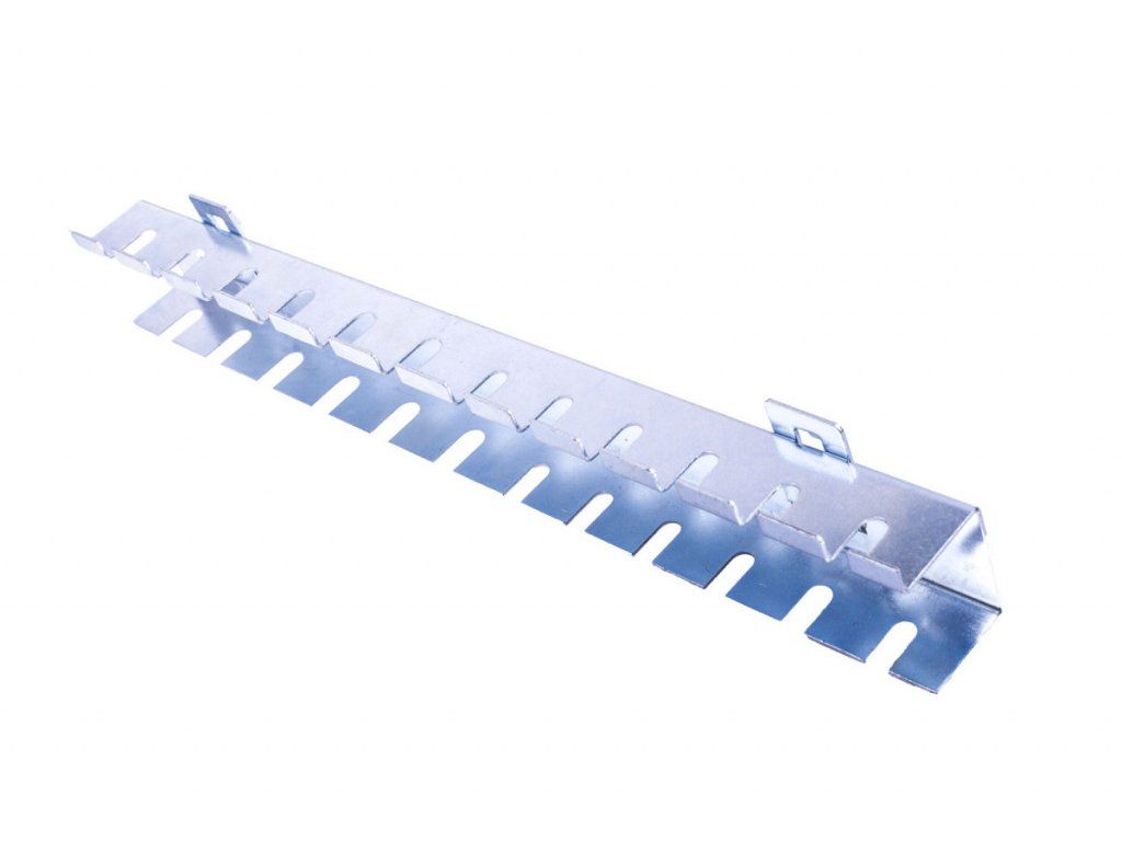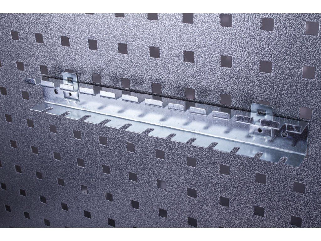 Držák 12 ks šroubováků je určen pro děrované desky s roztečí 38 x 38 mm. Připevněním na perforovaný panel lze rozšířit úložný prostor také pro sestavy dílenského nábytku, dílenské vozíky s nářadím i bez nářadí, pracovní stoly i policové regály.