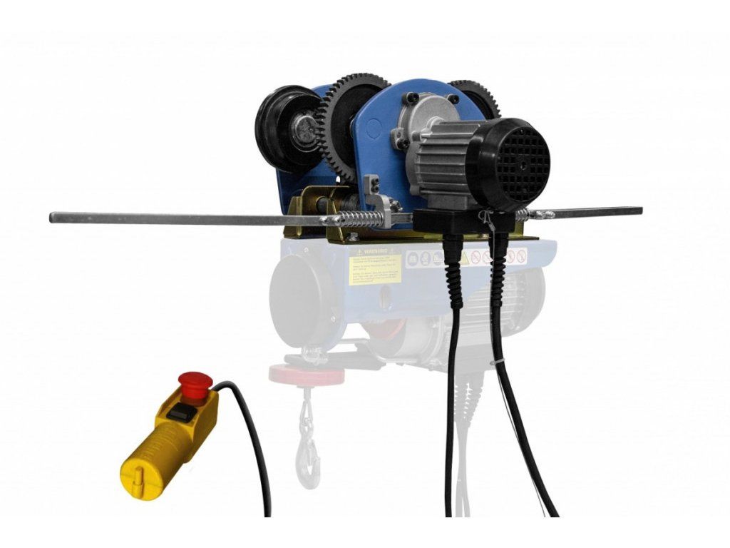Elektrická jeřábová kočka, určená k horizontálnímu přesouvání řetězových kladkostrojů/lanových zvedáků se zavěšenými břemeny