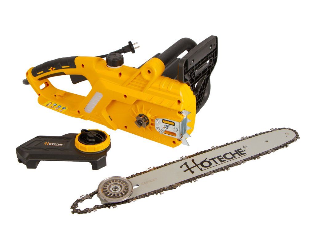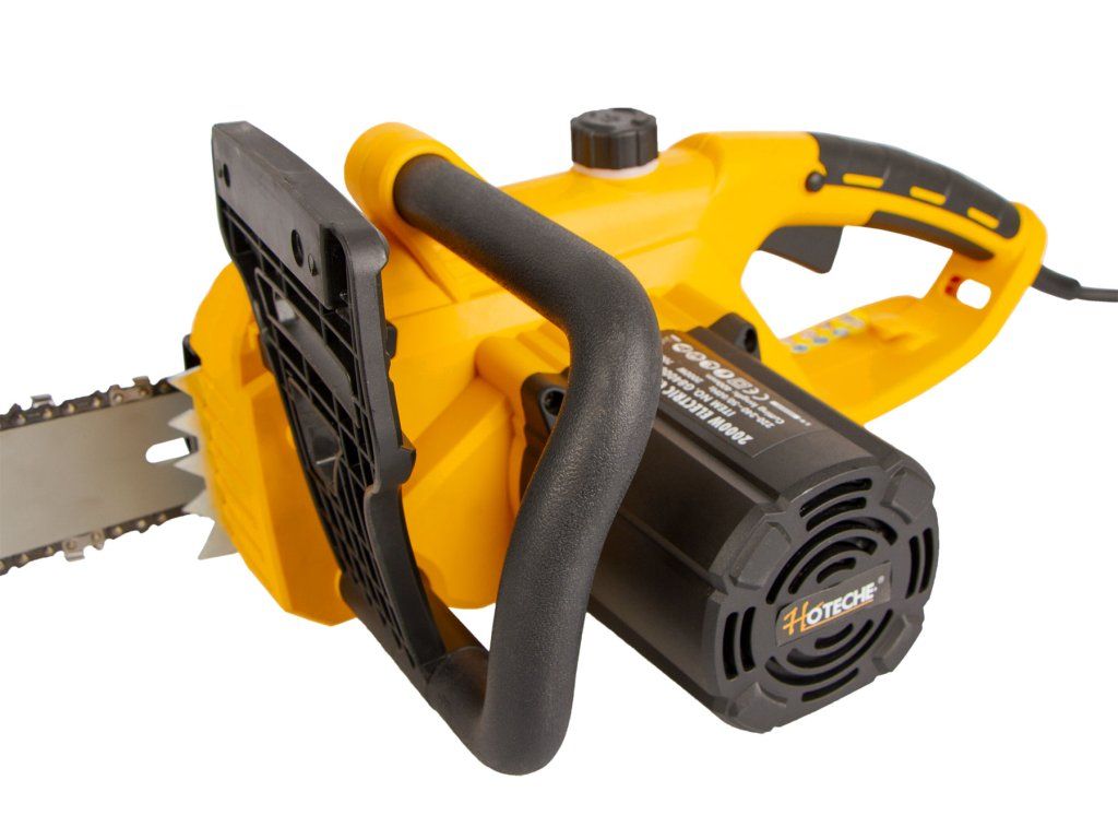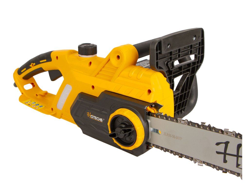 Elektrická řetězová pila (motorovka) značky Hoteche s délkou lišty 400 mm a příkonem motoru 2000 W představuje ideálního pomocníka pro rychlé a snadné práce se dřevem kolem domu a na zahradě.