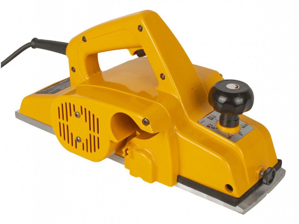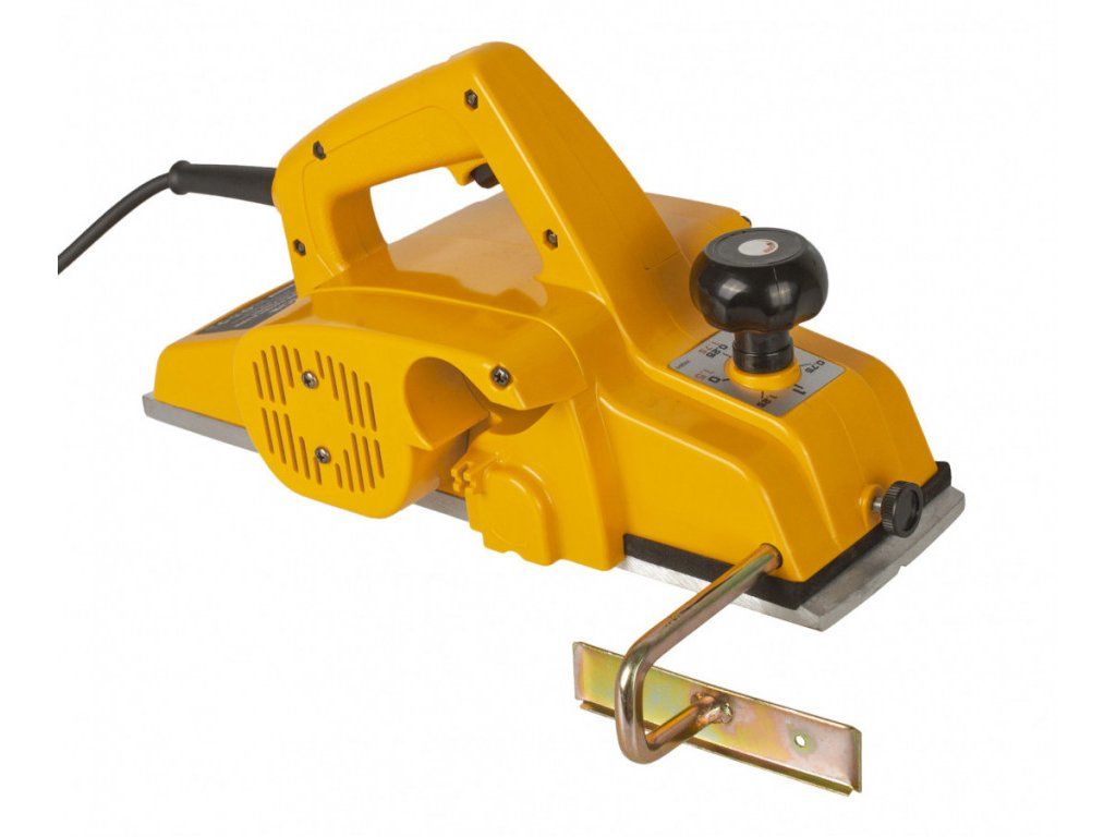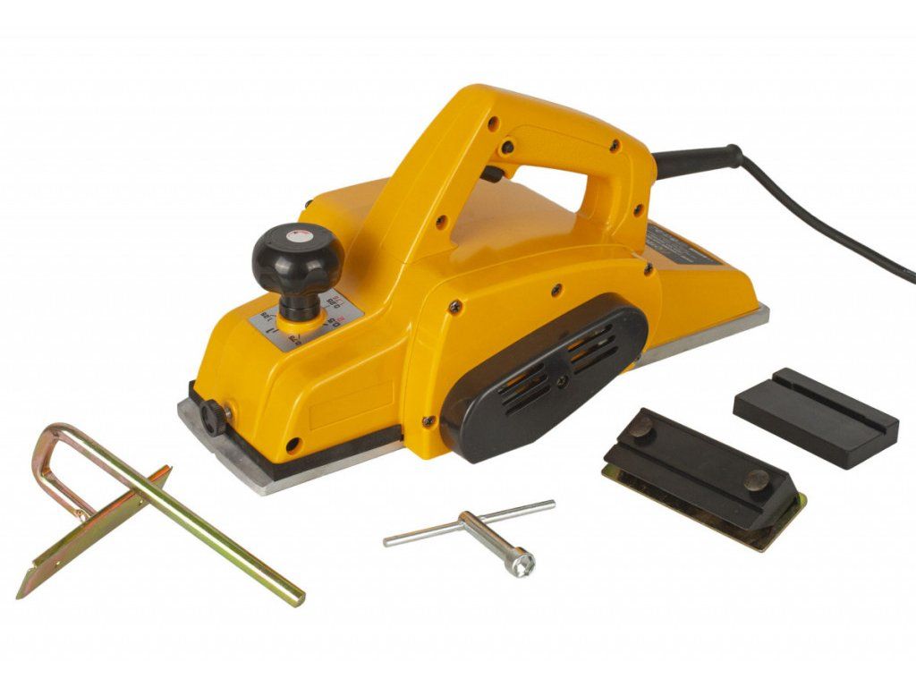 Elektrický hoblík, příkon 840 W, volnoběžné otáčky 16 000 ot/min, šířka nože 100 mm, max. hloubka 2 mm.