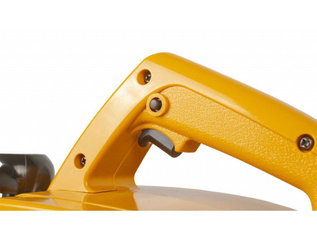 Snadnou ovladatelnost a pevný úchop zajišťuje ergonomicky tvarovaná rukojeť. Na pravé boční straně se nachází otvor pro odsávání (např. pro vysavač)