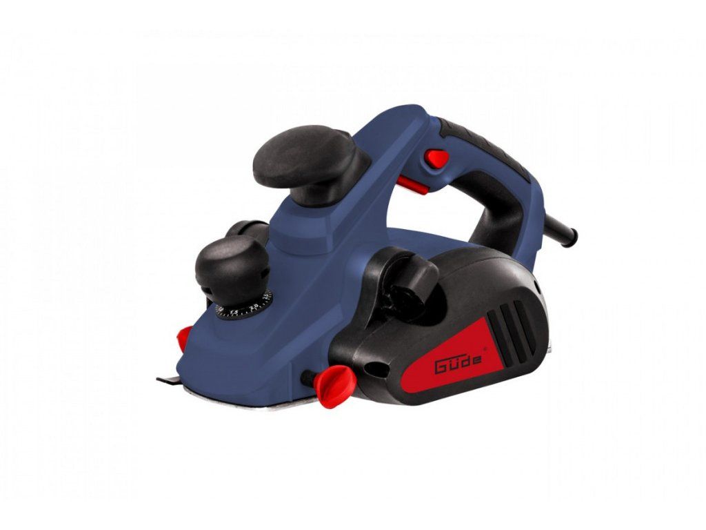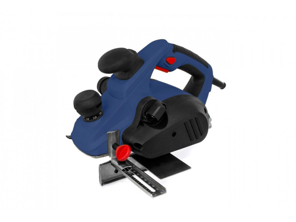 Konstrukce: ergonomicky tvarované rukojeti s tlumicími vložkami, podélný/falcovací doraz, dvojitý výfuk třísek (oboustranný odhoz hoblin), parkovací botka (bezpečné odkládání hoblíku bez poškození dřeva/nožů).