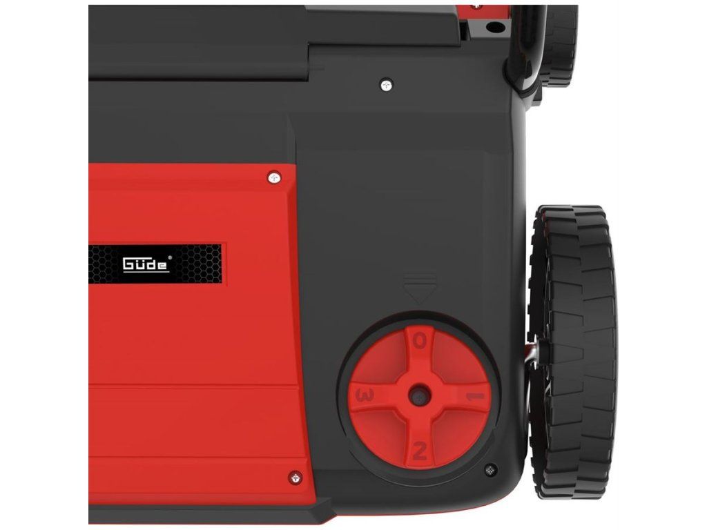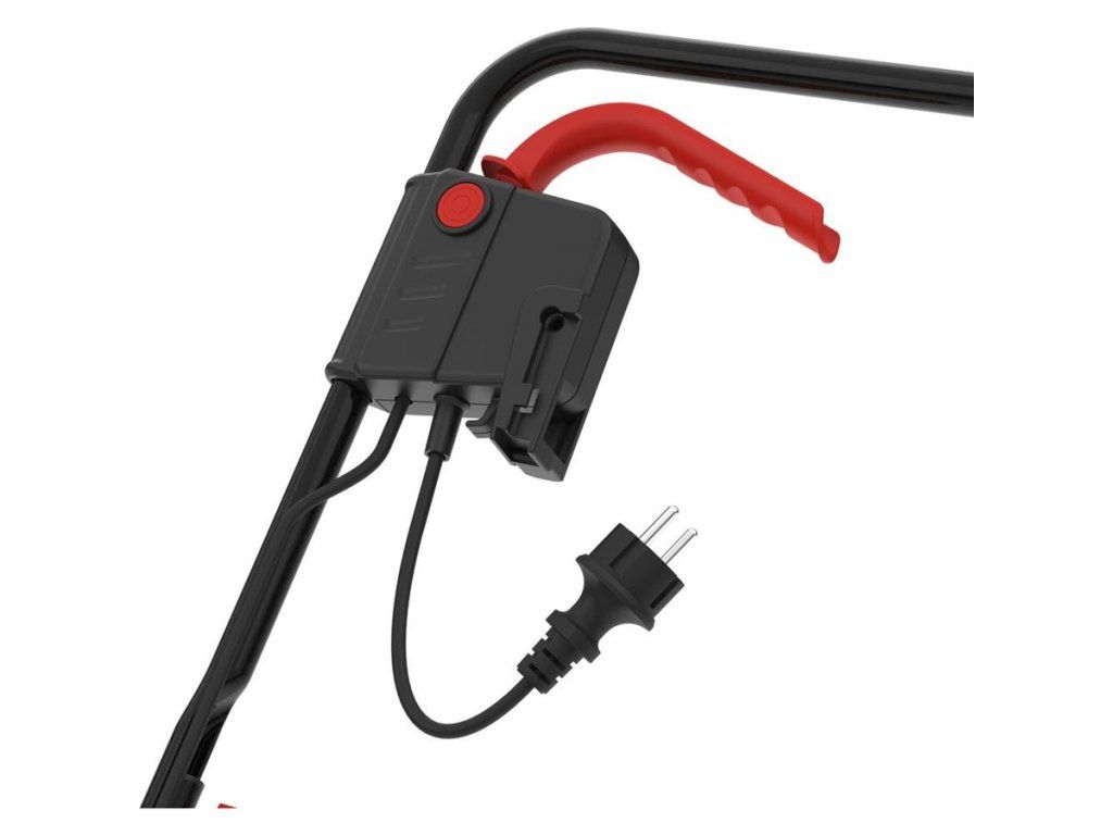 Elektrický vertikutátor a provzdušňovač s bezpečnostním spínačem, sklopná vodící rukojeť, kola s lehkým pojezdem, 4-polohové centrální nastavení výšky (-12/-8/-4/+3 mm), odlehčení kabelu od tahu.