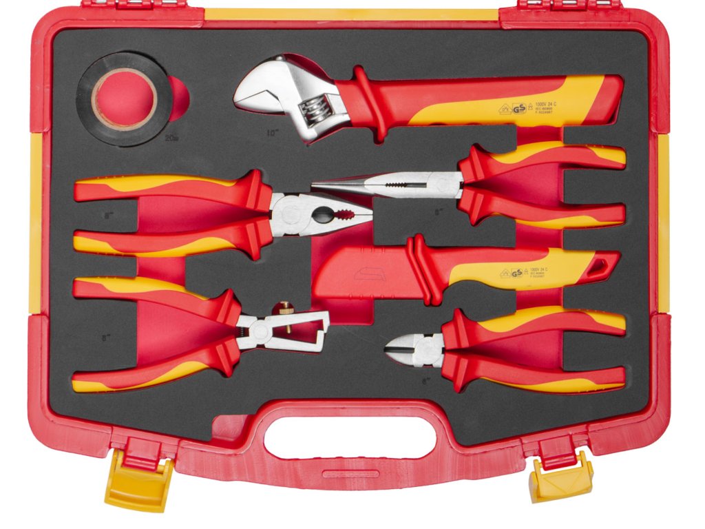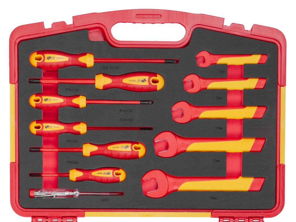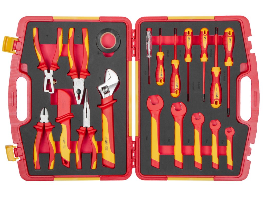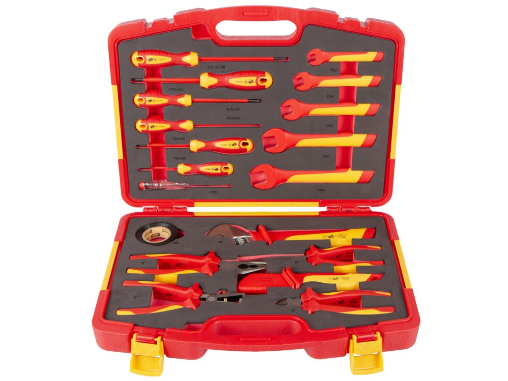 Sada VDE izolovaného nářadí obsahuje 19 kusů profesionálního nářadí, které splňuje přísné normy VDE a GS.