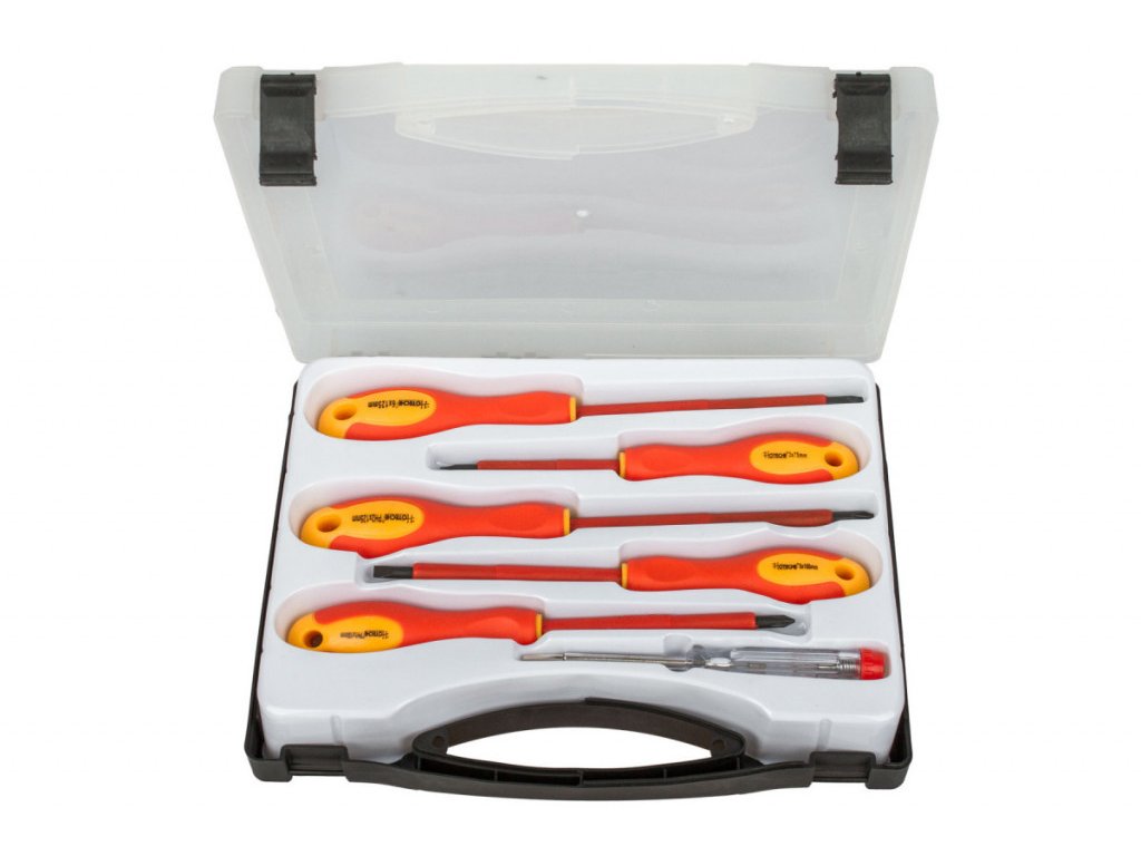 V sadě naleznete izolované šroubováky VDE: