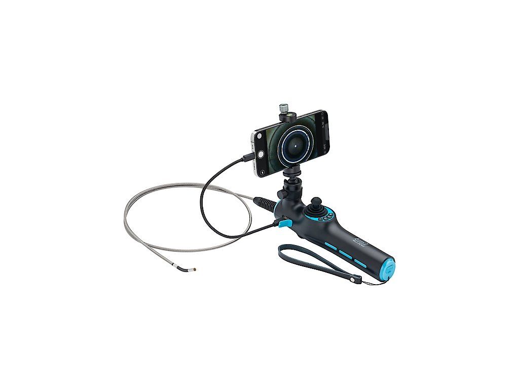Endoskopická kamera k mobilu, otočná o 360°, průměr sondy 3,9 mm. Připojení smartphonu jako displej. Ovládání pomocí joysticku.