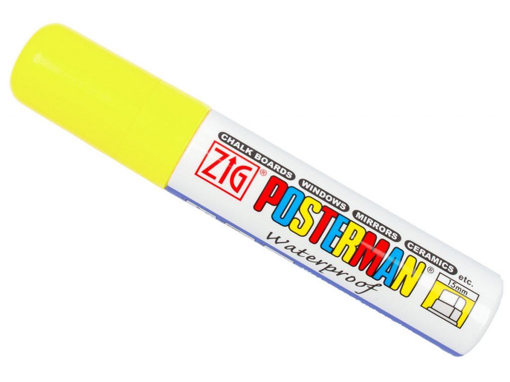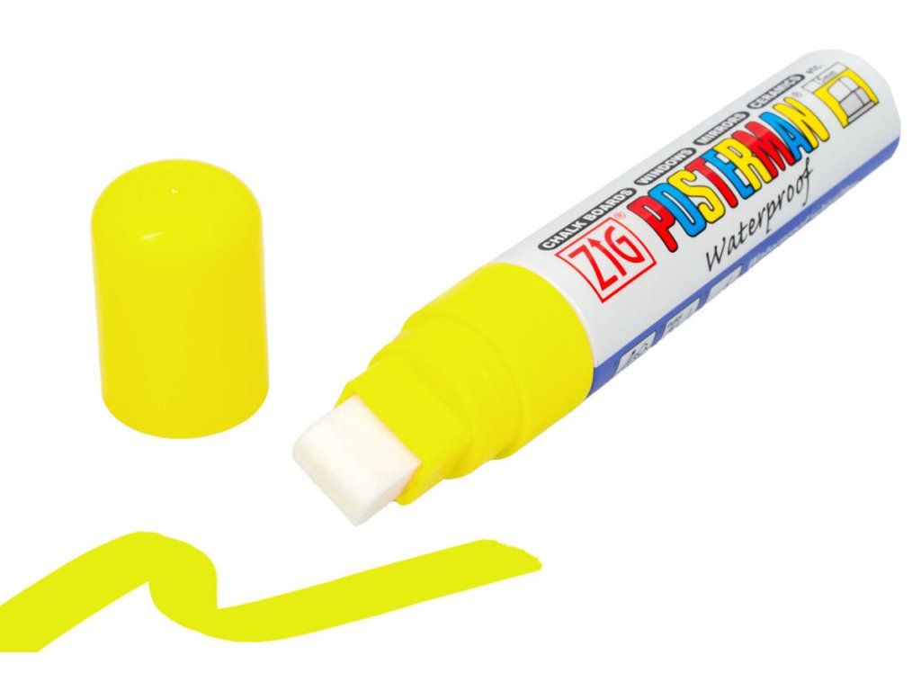 Fluorescenční žluté voděodolné fixy na sklo.