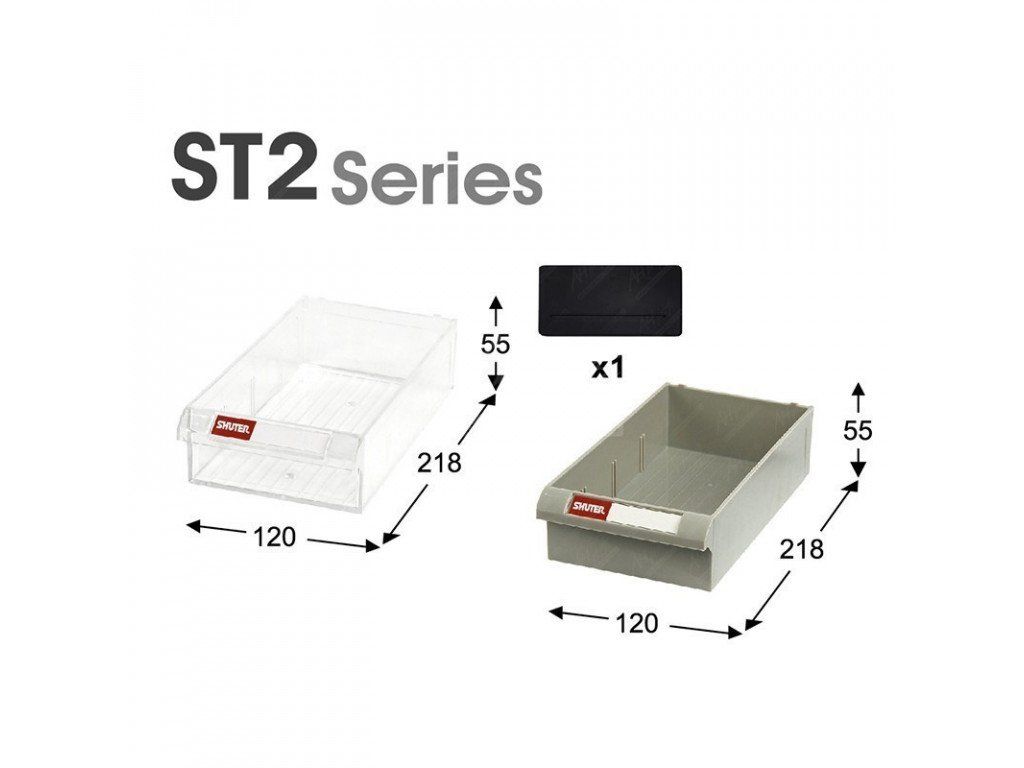 - Jednotlivé plastové boxy jsou plně průhledné dosahují rozměrů (Š x V x H) 120 x 55 x 218 mm, objemu 1,2 l a maximální nosností 5 kg.