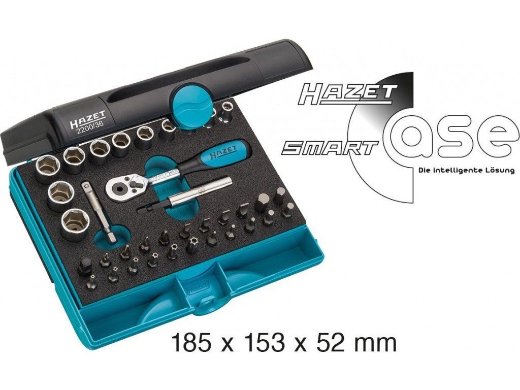 Vysoce kvalitní sada nástrčných klíčů a bitů od německého výrobce HAZET, celkem 36 kusů v plastovém boxu, ořechy 5-14 mm a ráčna 1/4".