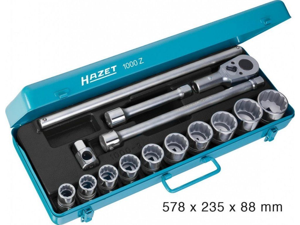 Vysoce kvalitní gola sada 3/4" od německého výrobce HAZET, 12hran, 15 kusů v kovovém kufru, obsahuje ořechy 22-50 mm, ráčnu, vratidlo a adaptéry.