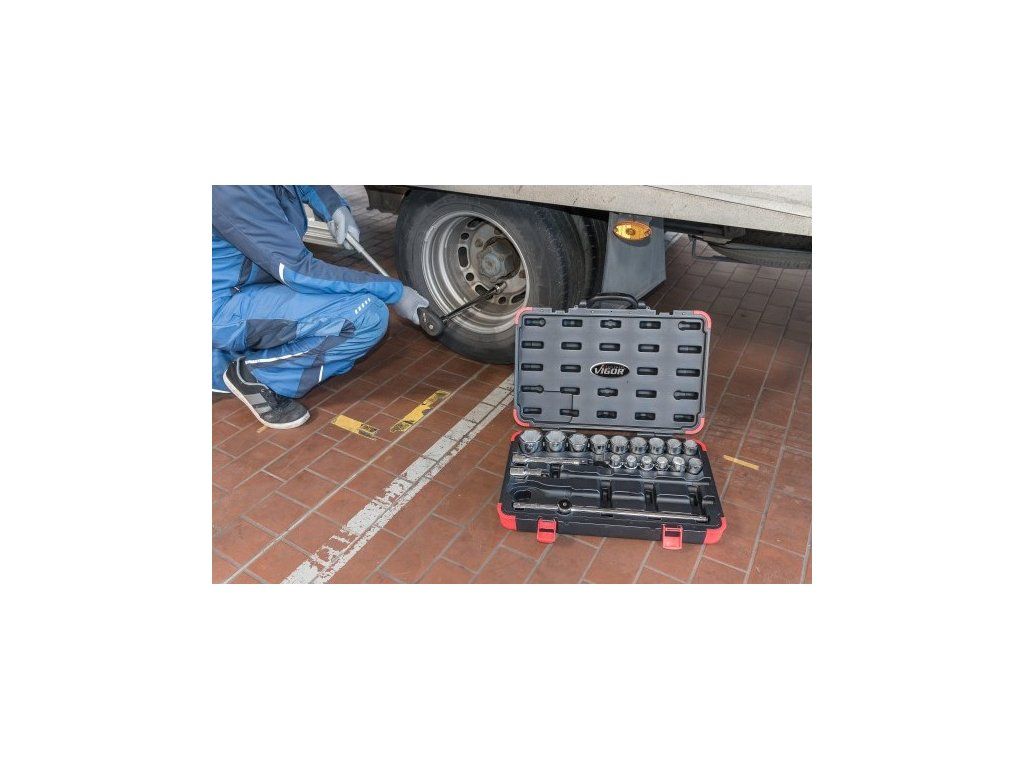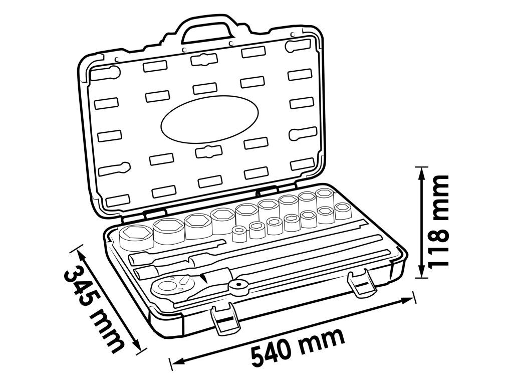 - 21 kusů v sadě – zahrnuje velikosti nástrčných klíčů od 19 do 50 mm.