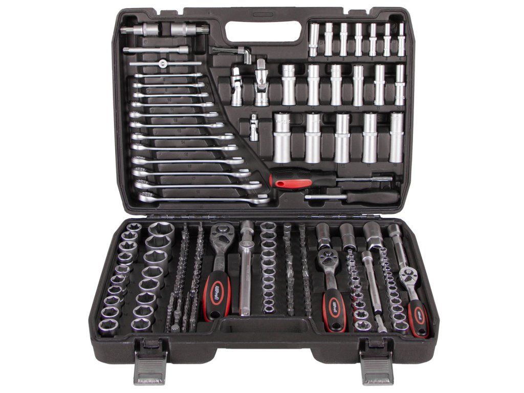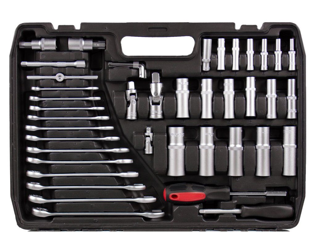 Sada nářadí v kufru s golou je vhodná do každé dílny. Gola sada obsahuje všechny tři běžně potřebné ráčny, tedy ¼", 3/8" a ½" a k nim odpovídající příslušenství v podobě klasických nástrčných klíčů, navíc prodloužených ořechů, nástrčné klíče na svíčky, hlavice s bity, očkoploché klíče apod. (viz podrobný popis). Všechny tři ráčny mají jemný krok 72 zubů pro přesnou práci i v omezeném prostoru.