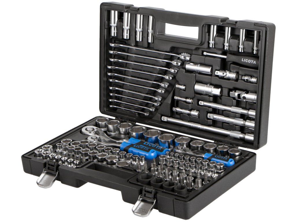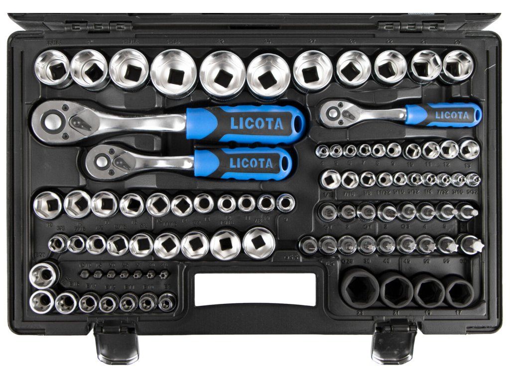 Profesionální gola sada 120 ks od značky LICOTA obsahuje nástrčné klíče se čtyřhranem 1/4", 3/8" i 1/2" a to v metrických i palcových rozměrech.