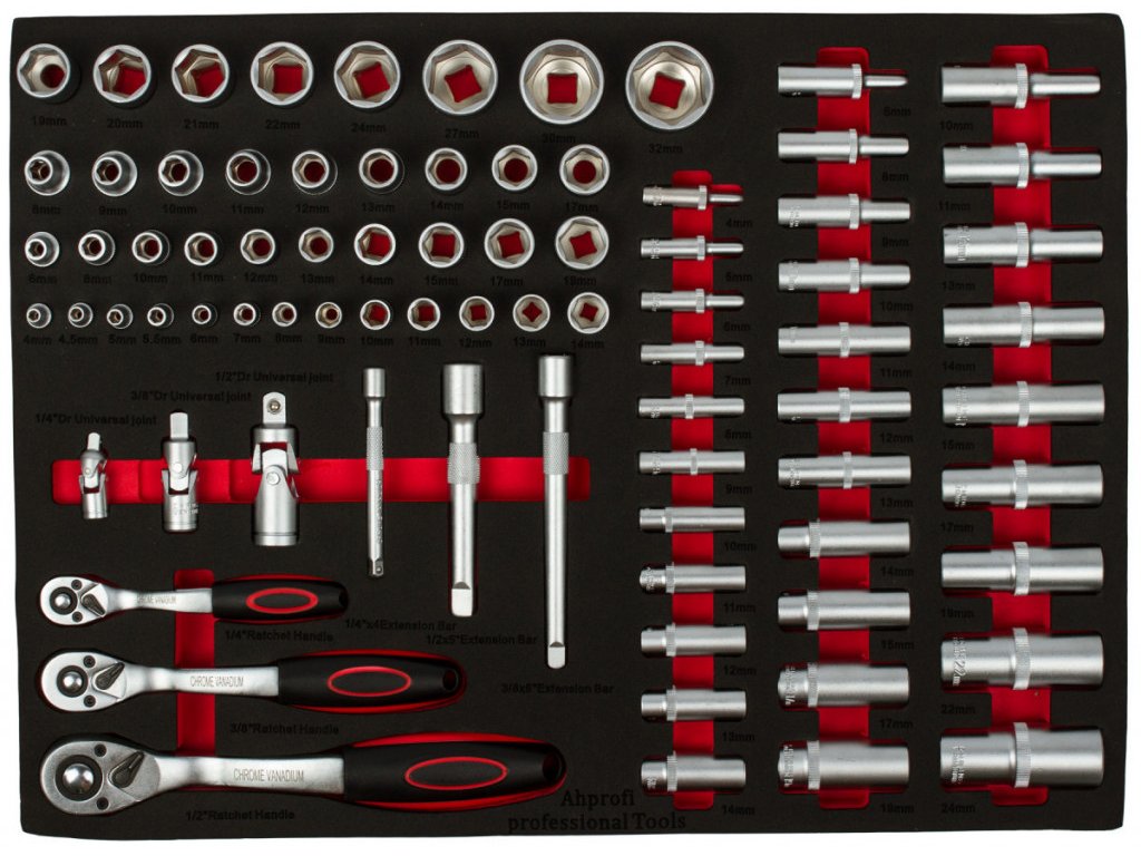 - Nástrčný klíče 1/2": 8; 9; 10; 11; 12; 13; 14; 15; 17; 19; 20; 21; 22; 24; 27; 30; 32 mm.