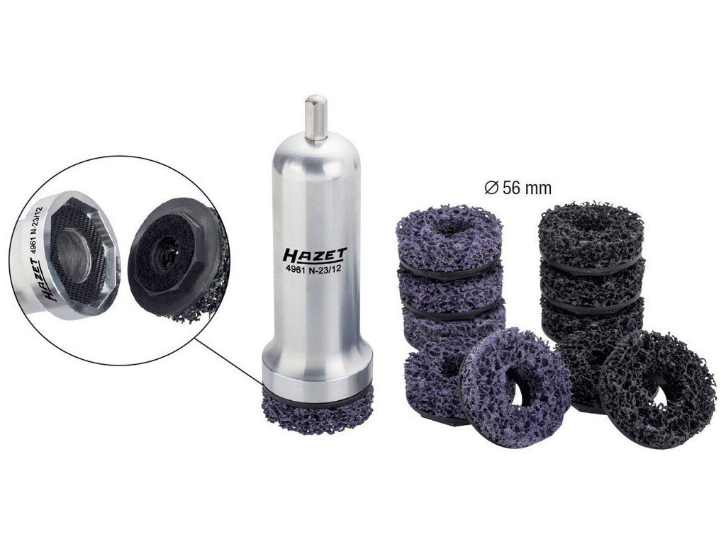 Sada brusek pro náboje kol HAZET, se 6hranným uchycením pro pevné držení v přístroji.